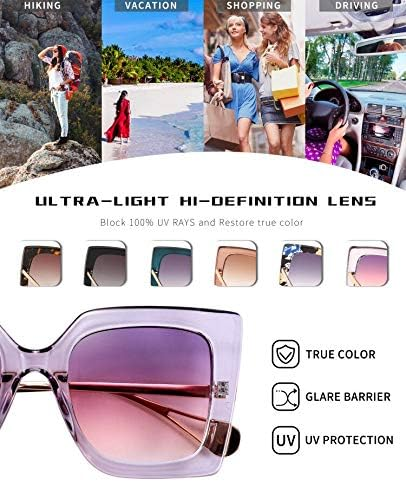 Karsaer Sunglasses Womens Trendy, Oversized Square Shades, Pearl Inlay Cat Eye Frame UV400 Protection E1051