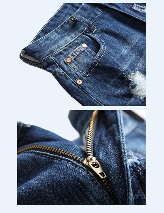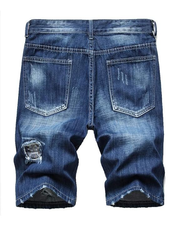 Casual jean shorts for men slim fit distressed ripped skinny blue denim short jeans