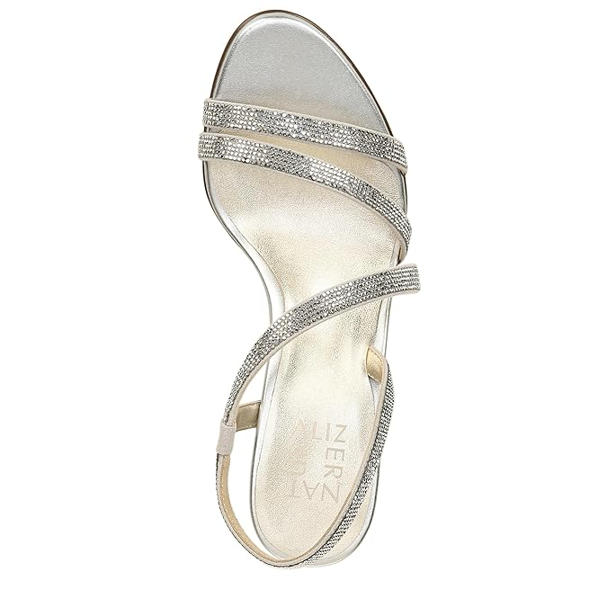 All-day comfortable womens crystal embellished dress heeled sandals with slingback strap