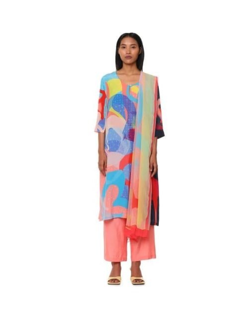 Aurelia Women’s Abstract Printed Flared Kurta Set with Trouser and Dupatta for Women