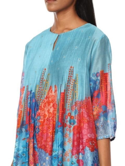 Blue Powder Chanderi Printed Kurta Bottom Set for Women