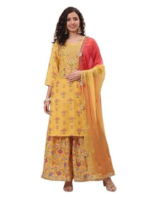 Women’s Embroidered Kurta Pant Set with Dupatta