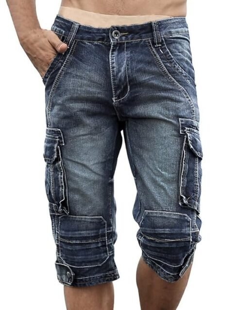 Idopy Men`s Cargo Denim Biker Jeans Shorts With Zippers
