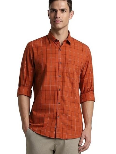 Peter England Men’s Checkered Casual Everyday Full Sleeve Shirt | 100% Cotton