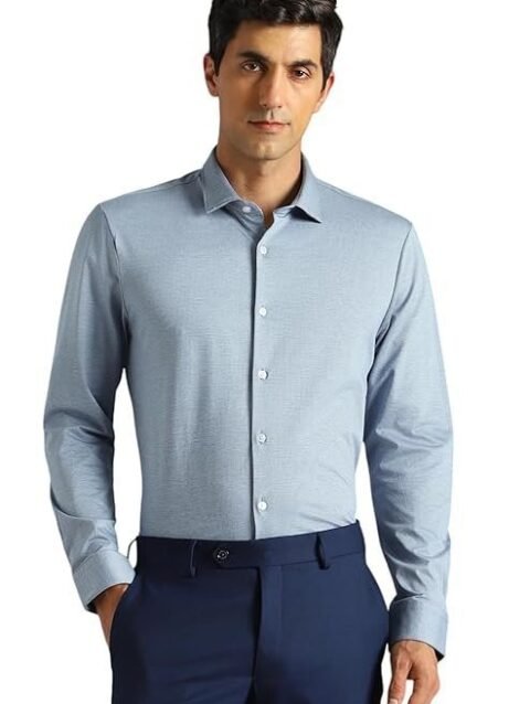 Louis Philippe Men’s Easy to Care Cotton Slim fit Solid Casual Shirt with Natural Stretch